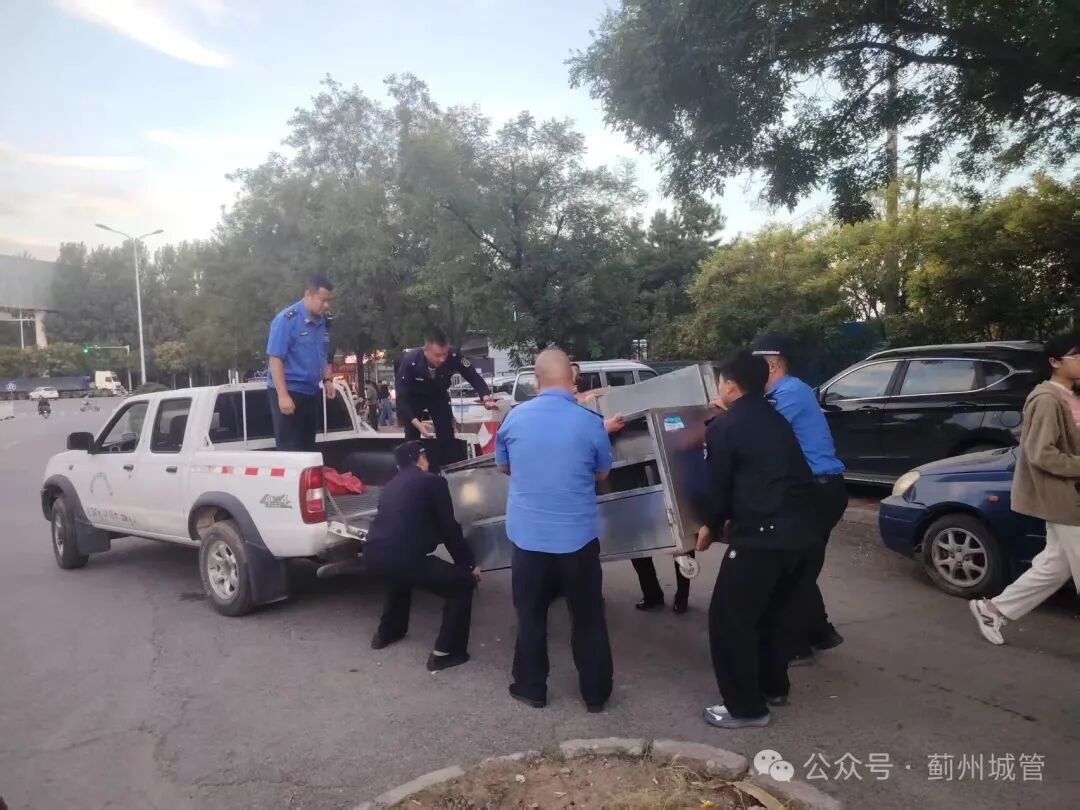 二、守牢秩序“主阵地”,保障城市运行畅通。聚焦节日期间人流、车流密集特点,以“巡查互联、即查即改”为抓手,多维度维护市容环境秩序:对城区76条主次干路开展全覆盖巡查,重点整治商户“里空外摆”、乱堆乱放,摊贩占道经营、非机动车无序停放等突出问题;同步加强户外广告、建筑外檐等景观设施及照明设备安全隐患排查,督促商户落实安全主体责任;每日安排专人巡查悬挂国旗,及时修复破损、缠绕等问题,维护城市形象。严格执行建筑垃圾运输昼夜巡查制度,督促在建工地强化进出口冲洗保洁,严防车辆带泥上路、抛洒滴漏;每晚将安排执法力量驻守渔阳古街,全力保障“盛世渔阳·独乐霓裳”国庆主题活动现场秩序。同时,为缓解节日期间周边停车压力,委机关停车场将全天候免费开放,每天提供车位400余辆次,为居民游客出行提供便利。