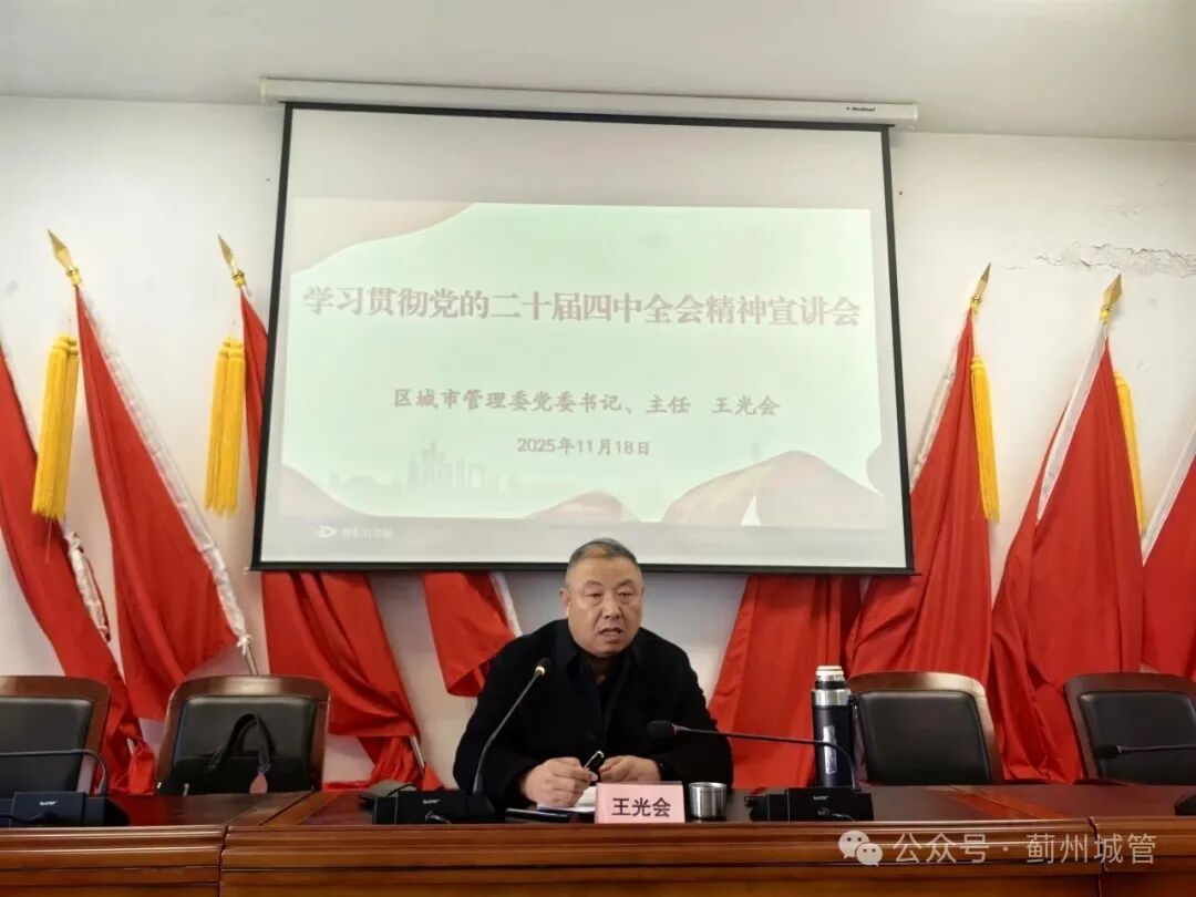 2025年11月18日下午,区城市管理委召开学习贯彻党的二十届四中全会精神宣讲报告会。区城市管理委党委书记、主任王光会作专题宣讲,全委干部职工200余人参加。