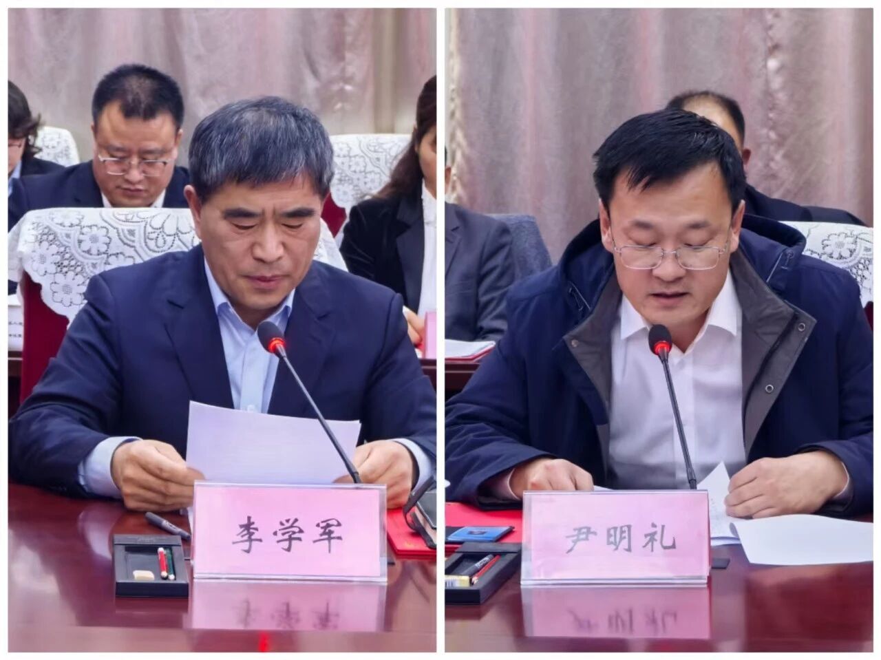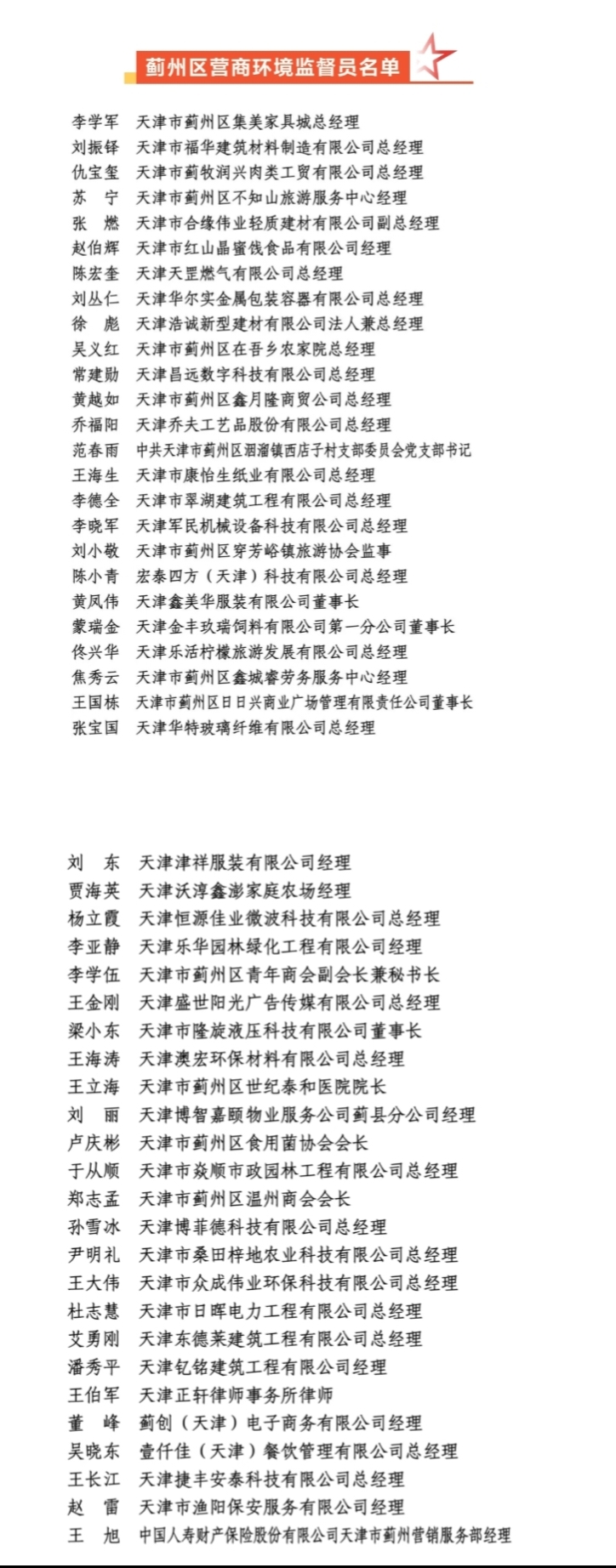 天津市蓟州区集美家具城总经理李学军、天津市桑田梓地农业科技有限公司总经理尹明礼作为营商环境监督员代表表态发言。