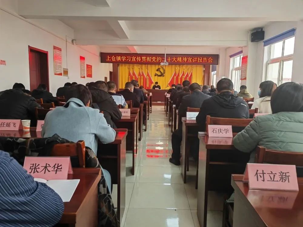 11月18日下午,在区委组织部统一培训结束后,上仓镇组织召开学习宣传贯彻党的二十大精神宣讲报告会,镇党委书记崔金星同志作宣讲报告,镇党政班子成员、机关中层及以上干部、41个村“一肩挑”参加。