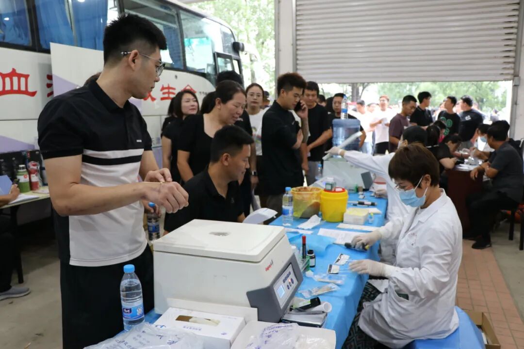 天气虽热,但大家献血热情很高,很多党员群众上午7点就早早地在活动现场前排起了队。活动现场,志愿者们有条不紊地引导,献血人员依次测温验码、填表登记、测量血压、验血筛查。工作人员在旁协助、疏导、服务,现场气氛热烈、秩序井然。
