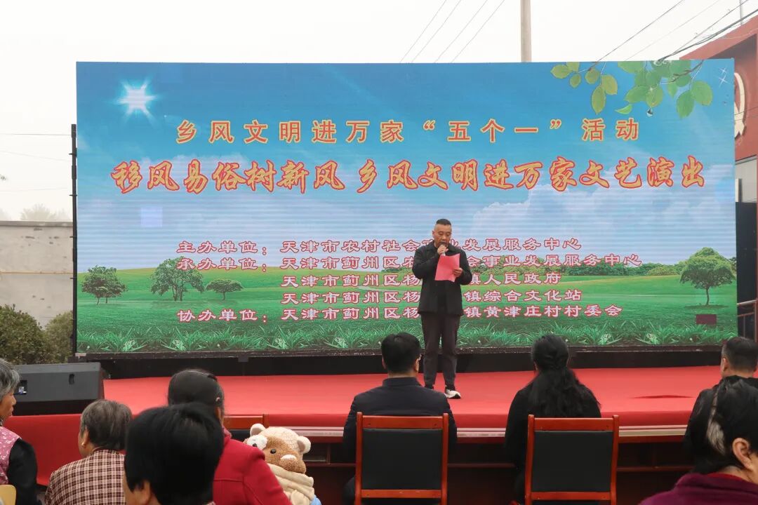 此次文艺演出由天津市农村社会事业发展服务中心主办,蓟州区农村社会事业发展服务中心、杨津庄镇人民政府、杨津庄镇综合文化站联合承办,黄津庄村村委会协办。