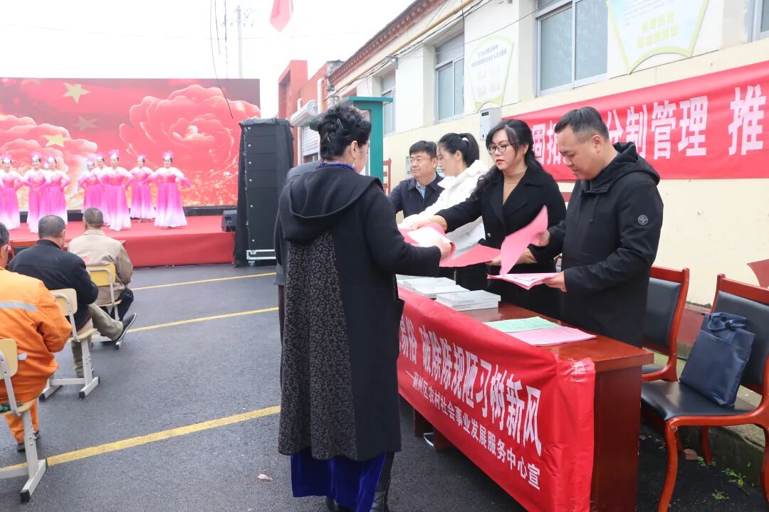 演出现场,区农村社会事业发展服务中心工作人员向群众发放《天津市乡村振兴典型案例》《天津市乡村治理》及《深化移风易俗推动红白喜事简办倡议书》等宣传资料,用通俗易懂的语言向村民解读相关政策,进一步提升村民对移风易俗工作的知晓率和参与度。
