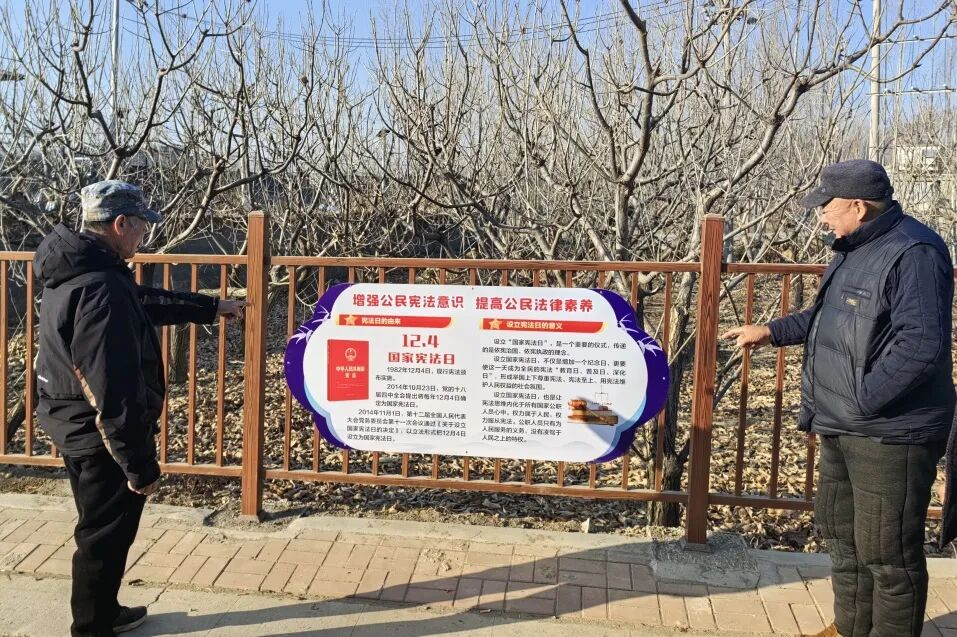 在乡党委、政府的支持指导下、天津农商银行驻村干部的倾力帮扶下以及村“两委”的凝心聚力下,这条法治文化长廊从共同商议、精心设计到圆满落成仅用两周时间,便成为提升村民学习法律知识、提升法治意识的重要宣教阵地。