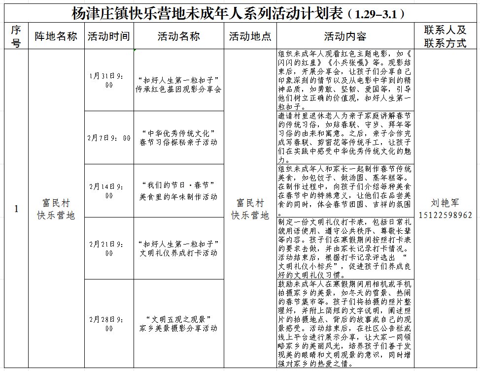为丰富未成年人文化生活,让广大青少年度过一个健康、快乐、有意义的假期,杨津庄镇“快乐营地”寒假期