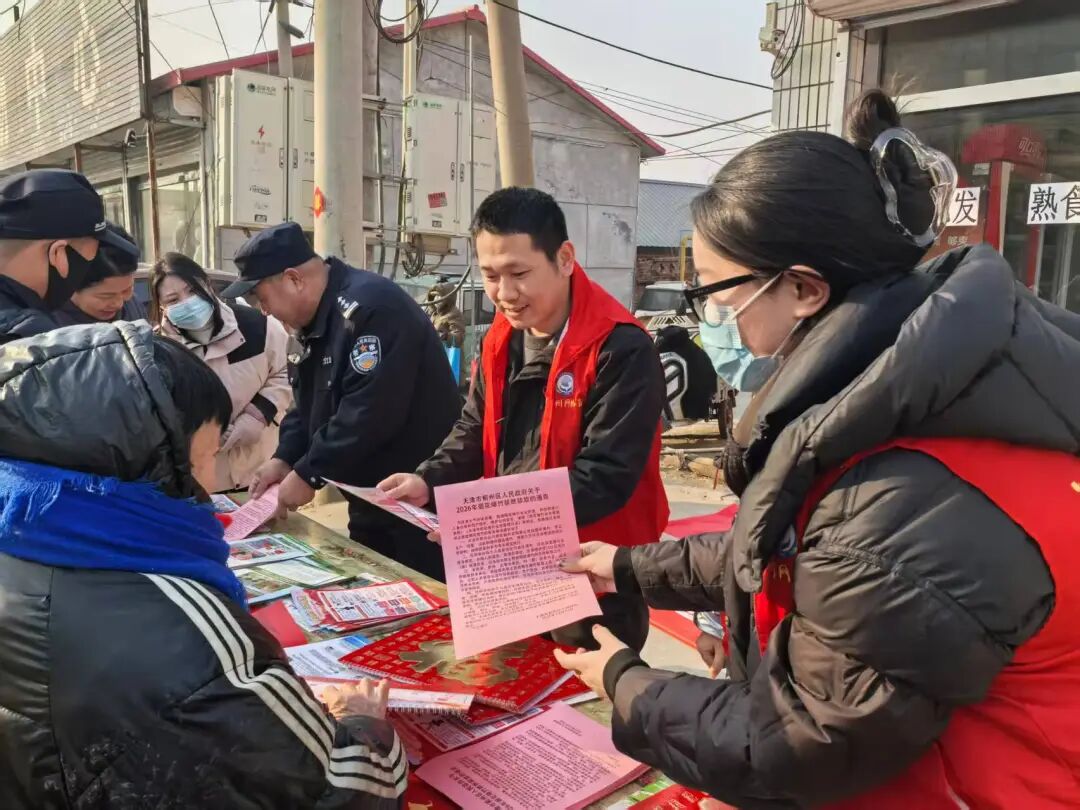 2月10日,恰逢小年佳节,杨津庄镇大堼上集市热闹非凡,杨津庄镇组织司法所、综合治理中心、综合执法大队、网信办等部门联合天津市渔山强制隔离戒毒所,为过往群众开展了一场生动的普法宣传活动。