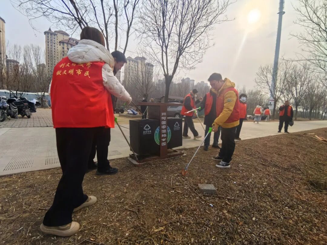清整现场,双方人员分工协作、协同发力,重点对公园沿岸步道、绿化带、草坪及卫生死角进行全面清理。大家手持扫帚、垃圾夹、垃圾袋等工具,捡拾白色垃圾、塑料袋、烟头、果皮杂物,清理枯枝落叶、杂草藤蔓与积存垃圾,同步对园区公共设施进行擦拭保洁,做到全覆盖、无死角、清彻底。