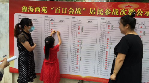 居民在“百日会战”次数公示榜贴上参与活动的标记