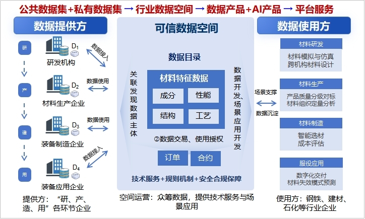 北京新材道数智科技有限公司(以下简称“北京新材道”)承担国家数据局新材料行业可信数据空间创新发展试点工作,推动在新材料行业探索构建共建共治、多方共赢的数据流通利用机制,培育高价值数据创新应用场景,服务全国一体化数据市场建设。北京新材道构建的InterMat可信数据空间聚焦新材料研发、生产、制造、应用全链条,通过构建统一标准与安全流通机制,推动材料成分、工艺参数、性能数据等多源数据的合规共享与协同应用,有效支撑协同研发、质量管控、供应链优化等重点场景,促进新材料产业从传统研发模式向数据驱动型创新转型。