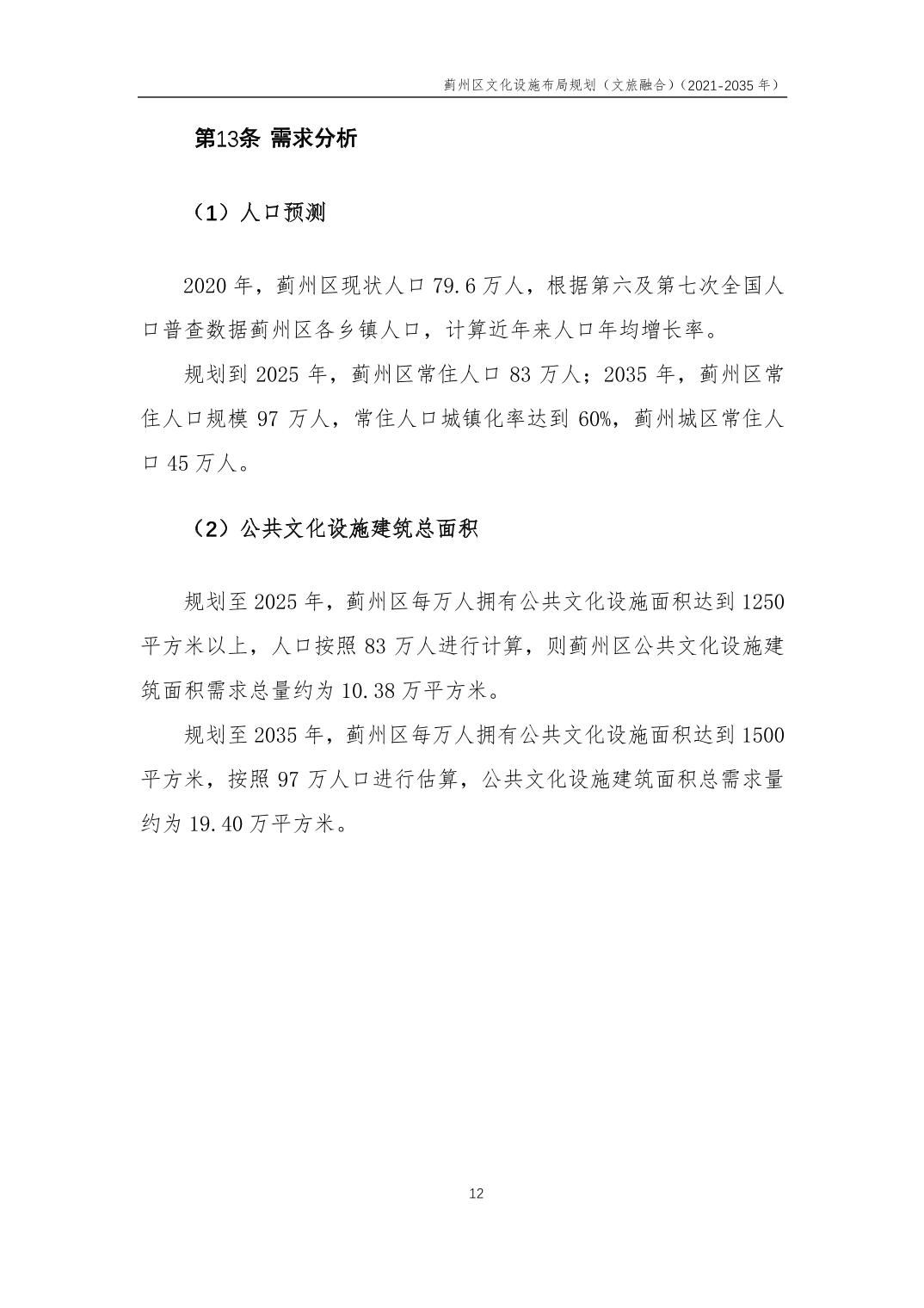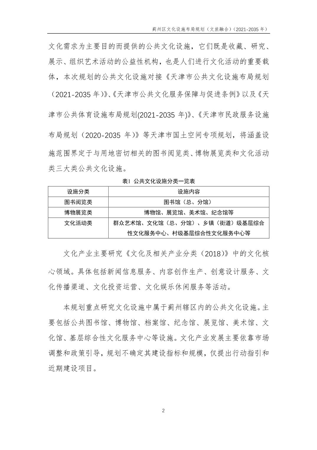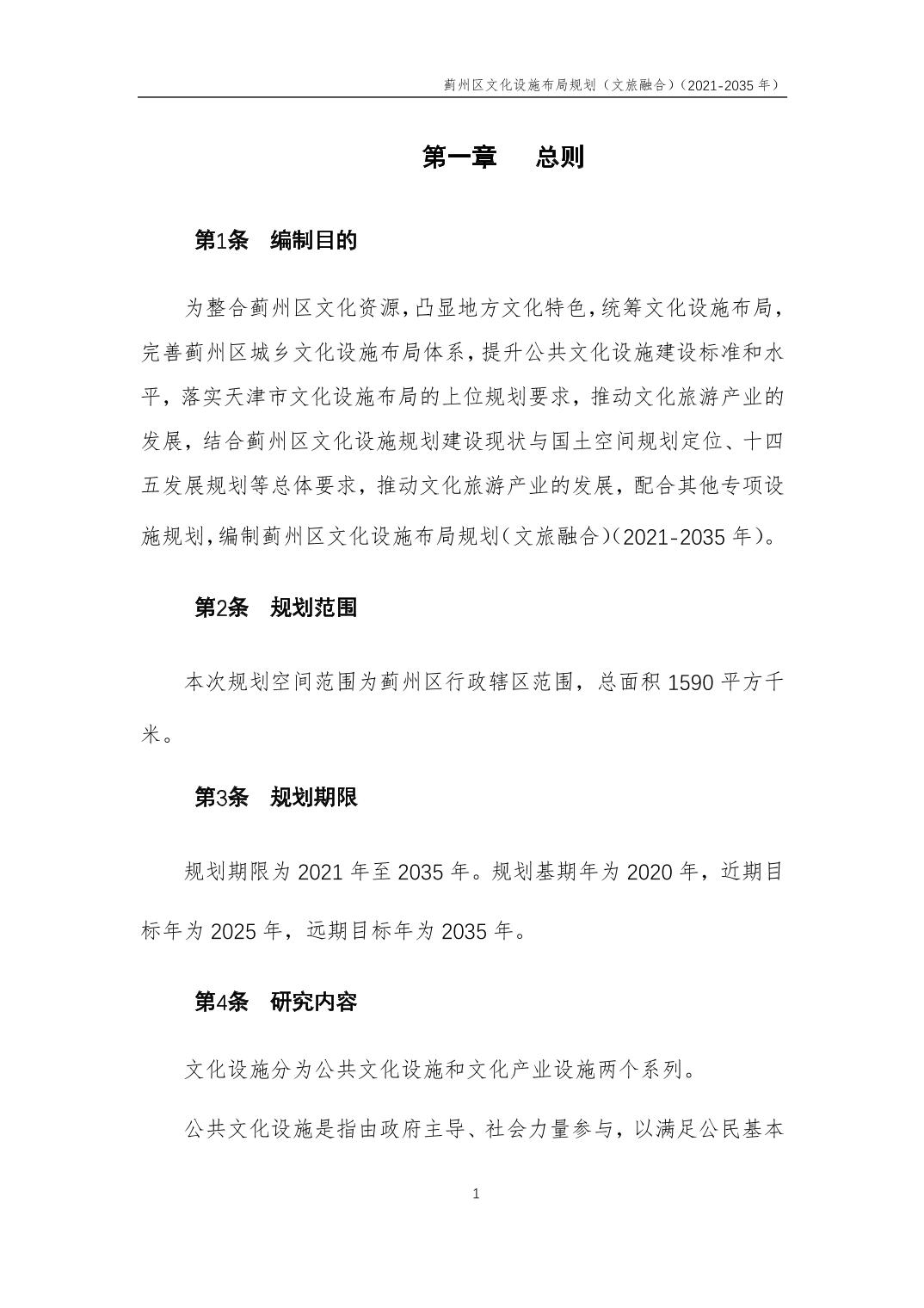 建设社会主义文化强国是实现中华民族伟大复兴的基础支撑,实施公共文化服务提质增效行动,是完善公共文化服务体系、繁荣文化事业的重要举措,是各级人民政府的法定职责。随着新型城镇化的步伐加快、城市人口规模的显著增长以及农业农村现代化水平的显著提高,蓟州区城乡人口结构持续变化,人民群众对公共文化的需求日趋多样,公共文化设施布局面临新的机遇与挑战。为提高公共文化服务质量,促进公共文化服务均等化、标准化,加快推进现代化文化强区建设,蓟州区文化和旅游局特制定了《蓟州区文化设施布局规划(文旅融合)》(2021-2035年)。该专项规划属于全区国土空间总体规划的构成部分,目的是为了整合蓟州区文化资源,凸显地方文化特色,统筹文化设施布局,完善蓟州区城乡文化设施布局体系,提升公共文化设施建设标准和水平,满足人民日益增长的美好生活需要,是增强全区群众文化获得感幸福感的惠民工程。