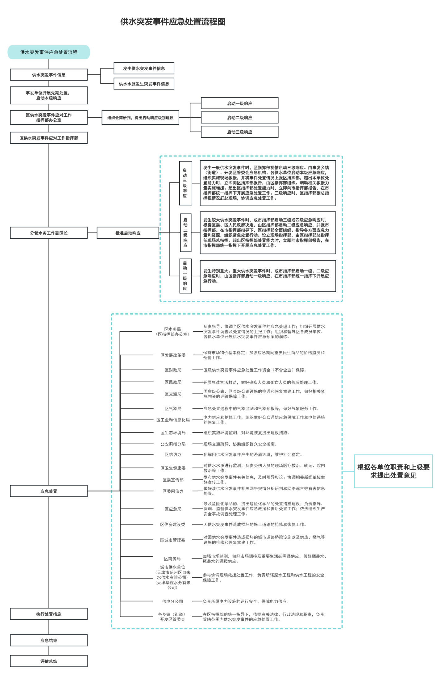 按照分级响应程序的职责分工,在区政府统一领导下,区领导小组负责做好善后处置工作。处置完毕后,区领导小组办公室应对金融机构突发事件的发生、应急处置等有关过程及处置结果进行全面评估和总结,将总结上报区政府和区领导小组。