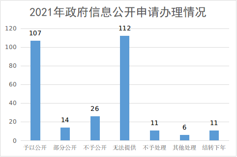一是强化对依申请答复的审核把关,完善信息公开部门接件、业务部门办件、法规部门(法律顾问)审件、主管领导核准的工作流程,确保答复意见清晰明了,引用法规条款适用准确,办理时限符合要求。二是及时更新政府信息公开指南,明确公众获取主动公开和依申请公开政府信息的主要渠道和具体方式。三是正确适用《国务院办公厅关于印发〈政府信息公开信息处理费管理办法〉的通知》要求,严格依照规定的标准计收信息处理费,合理确定申请的件数,避免引发争议,保障申请人的合理信息需求。2021年,全区共受理政府信息公开申请286件,上年结转1件,办结276件、结转至下年办理11件。对2个申请人的信息公开申请按照按量计收信息处理费标准收取信息处理费1130元。