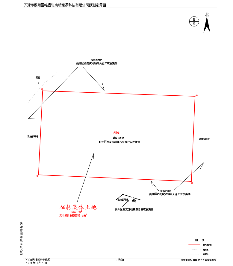 皓景雅岚蓟州西龙虎峪镇60MW风电项目已经市人民政府批准土地征收手续(批准文号为(津规资源准函 〔2025〕157号),批准征收土地0.6673公顷,根据《中华人民共和国土地管理法》《中华人民共和国土地管理法实施条例》《天津市土地管理条例》等法律法规要求,现将经依法批准的征收土地有关事项公告如下: