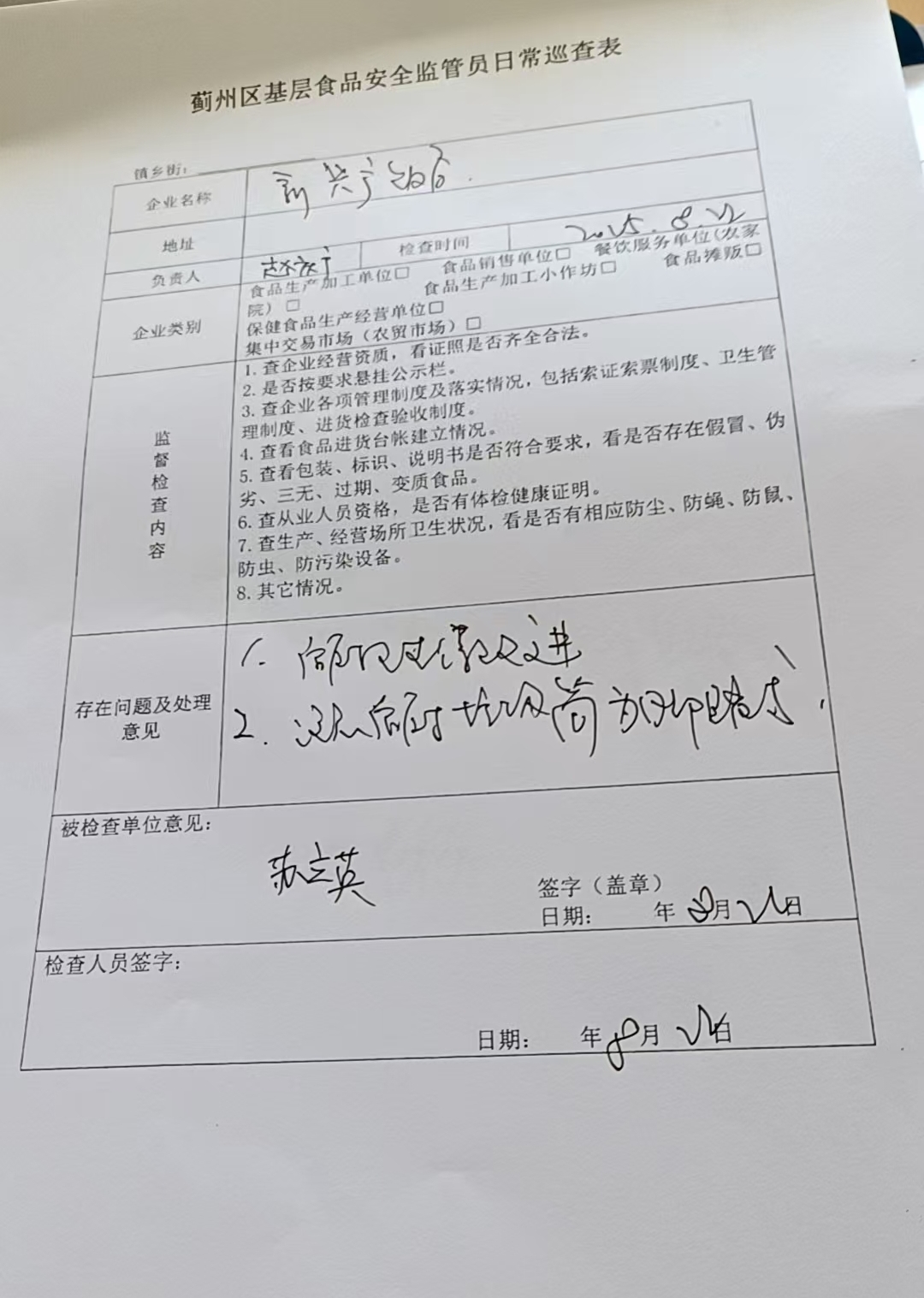 杨津庄镇基层食药品安全监管员日常