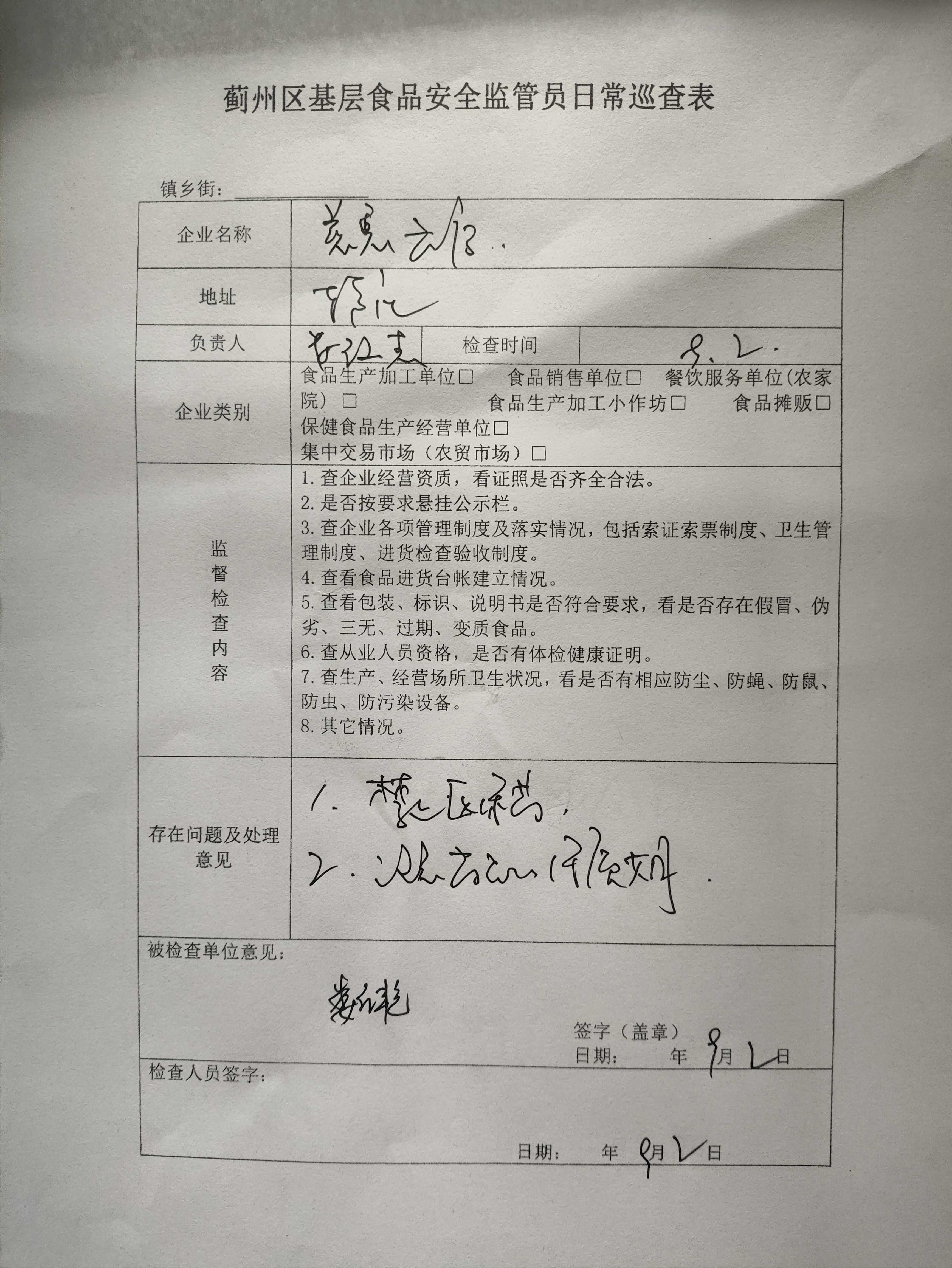 2025年9月2日,为确保本镇百姓的食品药品饮食安全,镇食安办安排基层食药品安全监管员,对镇域商店、药店进行全面检查。检查结果显示部分存在问题,安全监管员责令其立即整改。