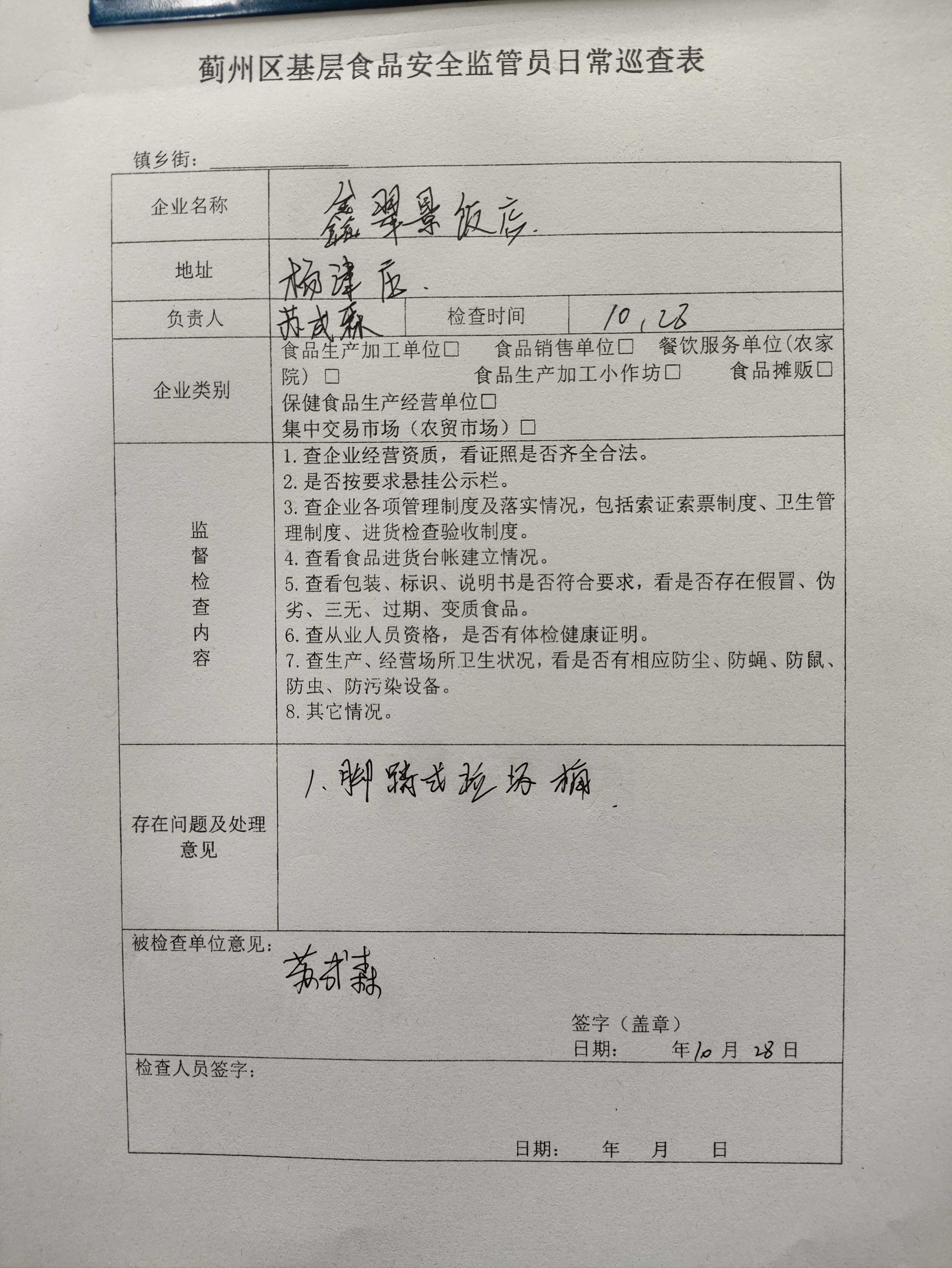 2025年10月28日,为确保本镇百姓的食品药品饮食安全,镇食安办安排基层食药品安全监管员,对镇域商超、饭店进行全面检查。检查结果显示部分存在问题,安全监管员责令其立即整改。