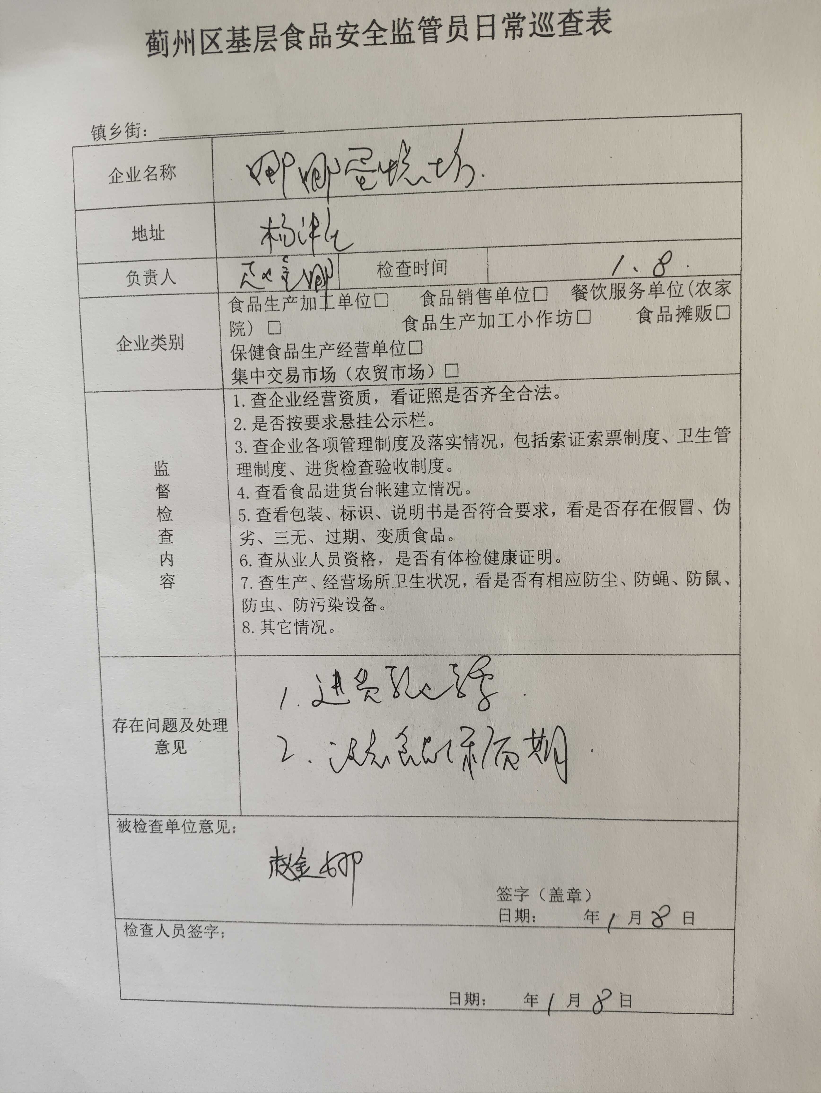 2026年1月8日,为确保本镇百姓的食品药品饮食安全,镇食安办安排基层食药品安全监管员,对镇域商超、饭店进行全面检查。检查结果显示部分存在问题,安全监管员责令其立即整改。
